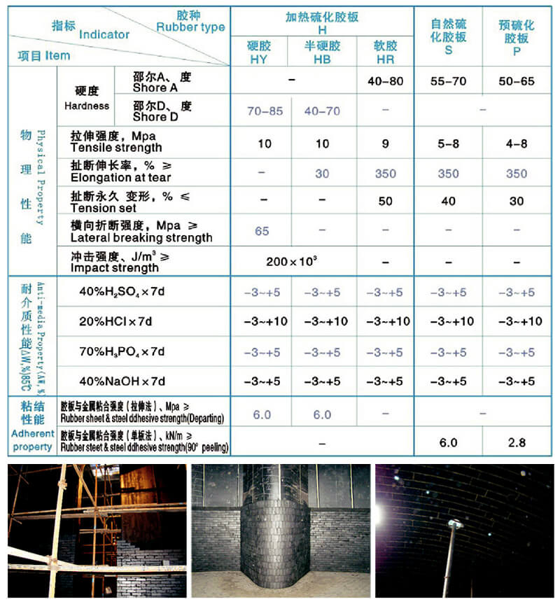 1.優(yōu)良的耐腐蝕性和物理機(jī)械性能 2.高彈性和高耐磨性(軟橡膠襯里) 3.高抗?jié)B透性 4.極好的粘結(jié)性能 5.良好的化學(xué)穩(wěn)定性 6.良好的熱穩(wěn)定性