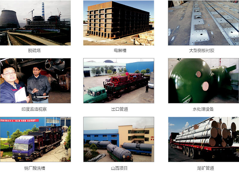 我公司化工防腐襯里系列主要有橡膠襯里(包括襯天然橡膠、氯丁橡膠、丁腈橡膠、低鈣鎂橡膠、預(yù)硫化丁基橡膠、熱水硫化橡膠、水泥基體襯膠),PE(PO)襯里,耐酸瓷磚襯里,玻璃鱗片樹脂襯里等。